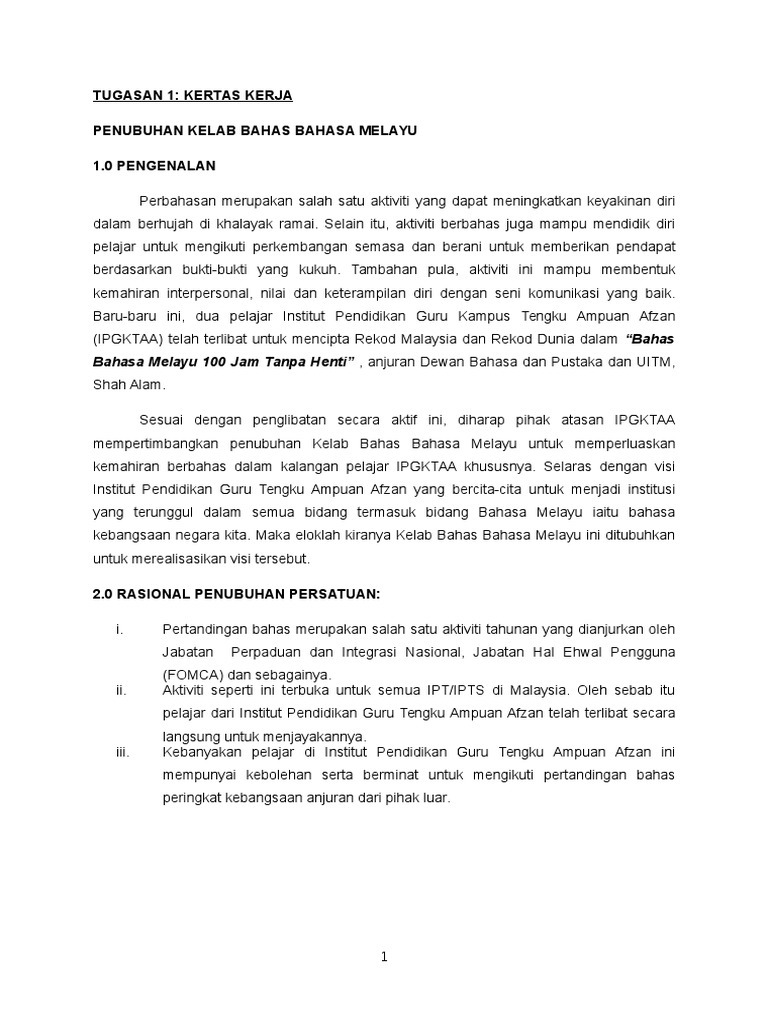 Contoh Kertas Kerja Penubuhan Persatuan Di Sekolah Pdf Amirctzx