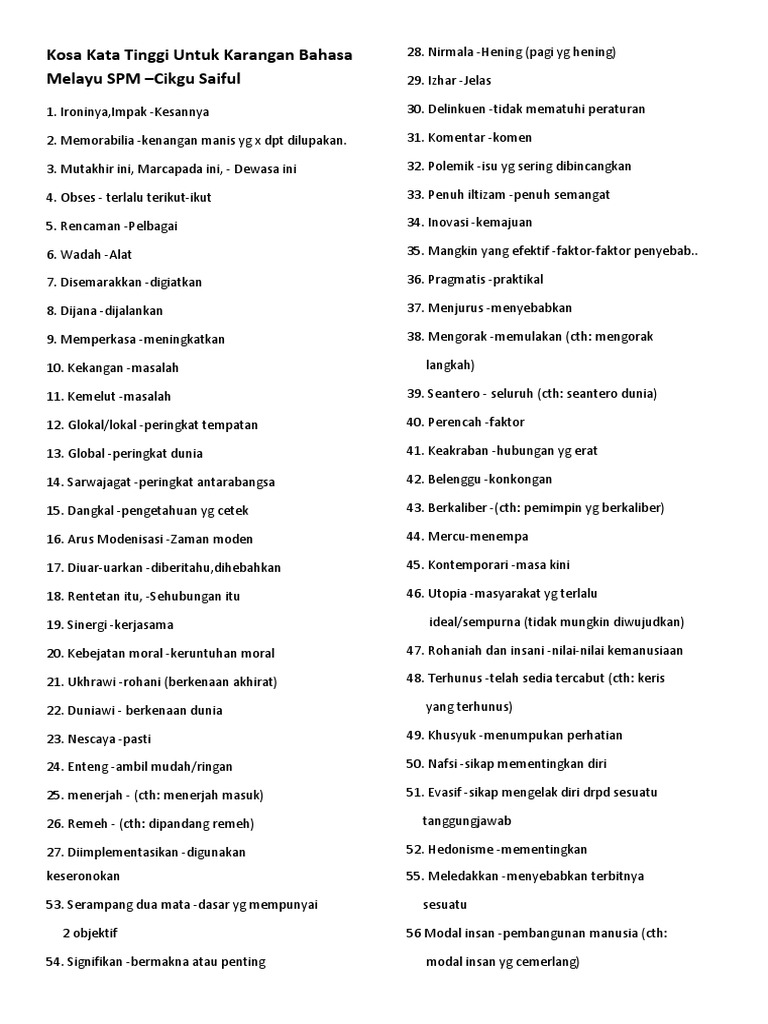 Kosa Kata Tinggi Untuk Karangan Bahasa Melayu Spm Pdf